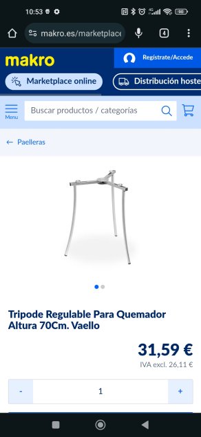 Lote en liquidación 190 tripode regulable para quemador paellero de gas butano/propano. Altura 70cm (para paelleros de 30 a 60cm). Acero zincado. Fabricado en España. Precio en tienda 31,59€ unidad. Nuestro precio 7,80 euros, minimo 50 unidades. Precio para todo 7,50 euros. Disponible para ver, pagar y cargar en nuestro almacen en Alicante o enviamos mas gastos de envio. Mira en liquistocks.com otras liquidaciones de stocks disponibles.