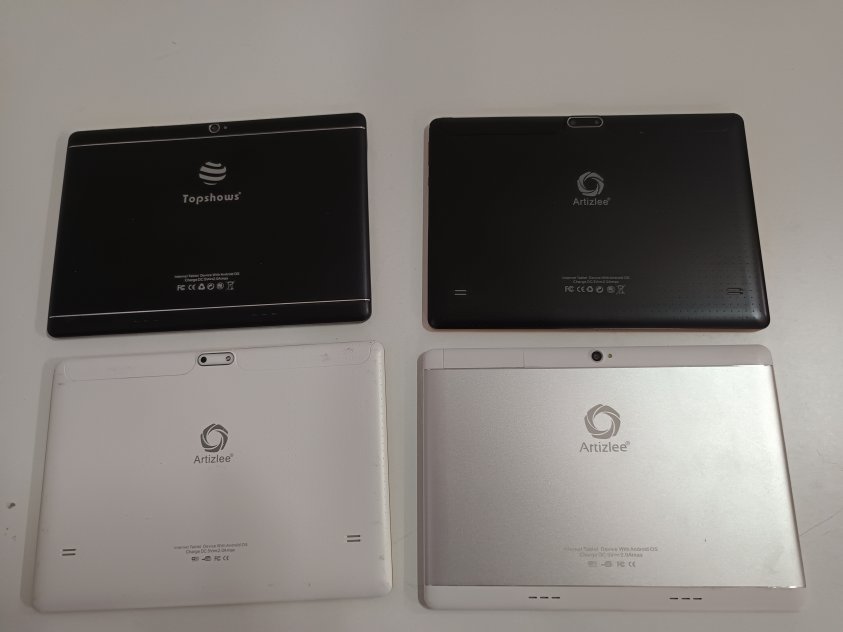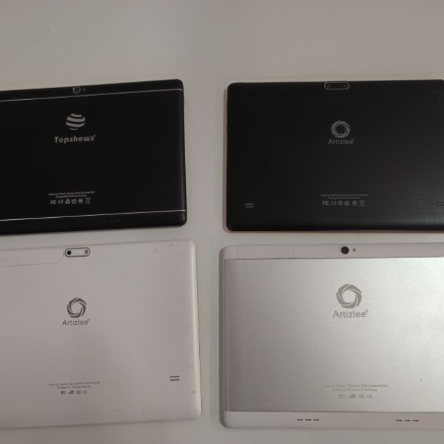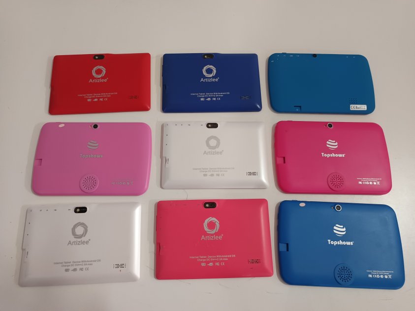Stock en liquidación 294 tablets clase C. No funcionan, para revisar y reparar. Marcas Topshows y Artizlee. De 10 y 8 pulgadas en varios colores. Hay 66 de 10 pulgadas y 228 de 8 pulgadas. Tienen un PVP de 70€ y 43€. Nuestro precio de 10 pulgadas 4,50€ y 8 pulgadas 3,50€. Disponibles para ver, pagar y cargar en nuestro almacen en Alicante o podemos enviar mas gastos de envio.