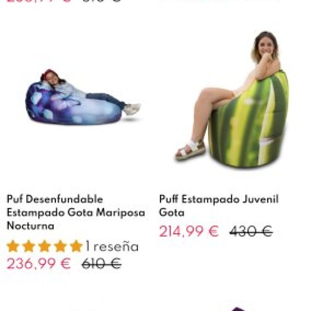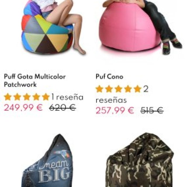 Lote en liquidación de 632 sofas puff en más de 35 modelos. Diferentes medidas y estilos. Hay 592 vacíos y 40 llenos. Incluye silo para rellenar puff, fundas, bolsas y cajas. Pidenos el packing list. Precio en tienda de 50 a 700 euros unidad. Nuestro precio 6500 euros el lote completo. Disponible para ver, pagar y pagar en nuestro almacén en Alicante. Podemos enviar mas gastos de envio. Mira en liquistocks.com otras liquidaciones de stocks.