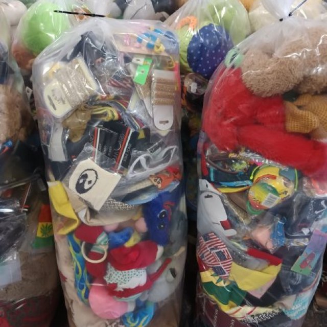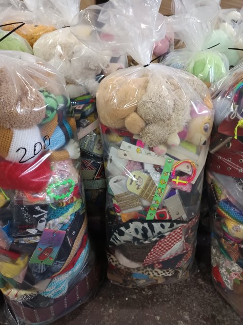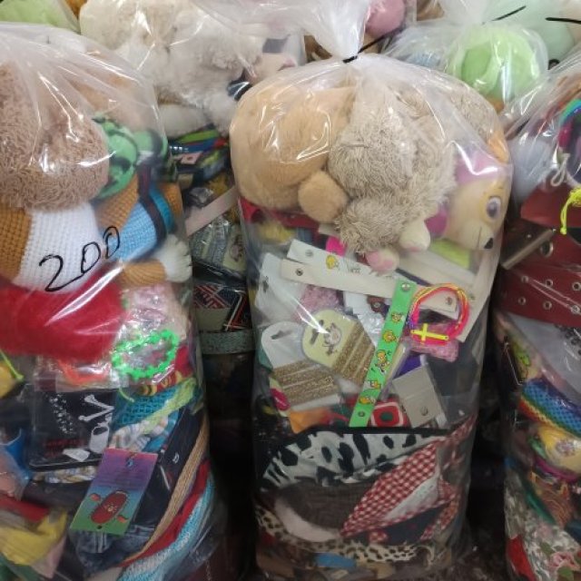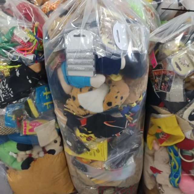 Lote en liquidación productos para cabalgata. En sacos de 200 unidades aproximado. Vienen pequeños juguetes, peluches, cosas para niños, complementos, accesorios etc… Los sacos van cambiando según el stock de productos que tengamos. Disponible para ver, pagar y cargar en nuestro almacen en Alicante o enviamos mas gastos de envio. Venta minimo 5 sacos para recogida y 10 sacos para envio.